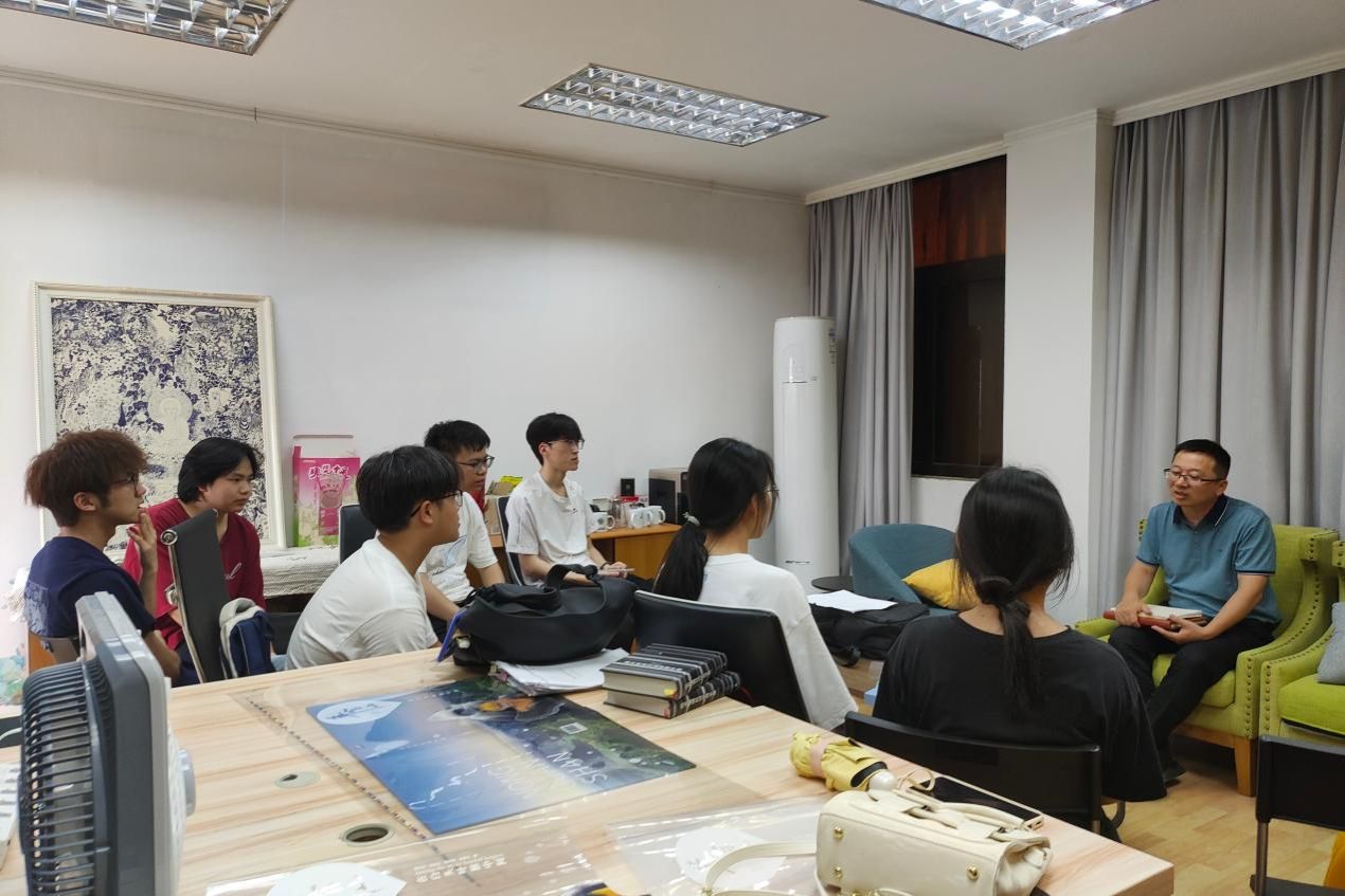 (饶江与同学们开展实习座谈会)