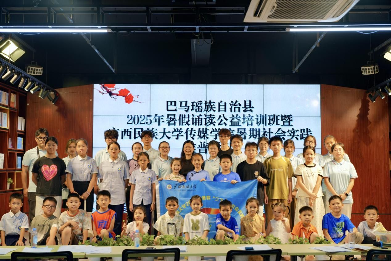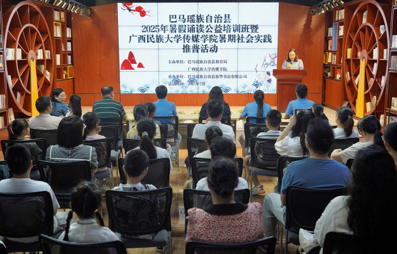7月3日至4日,巴马瑶族自治县教育局与广西民族大学传媒学院主办的 2025暑期诵读推普活动在巴马县新华书店举行。