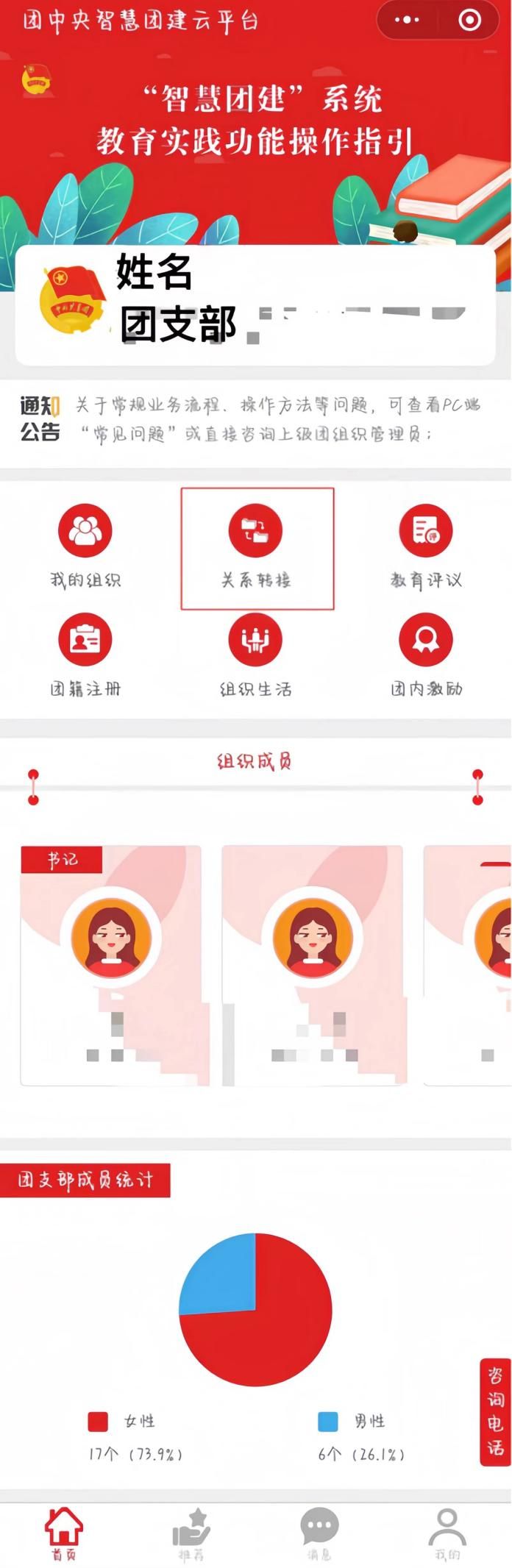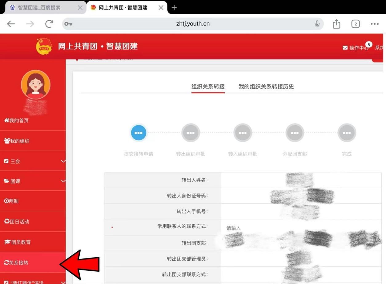 (“智慧团建”云平台关系转接页面)