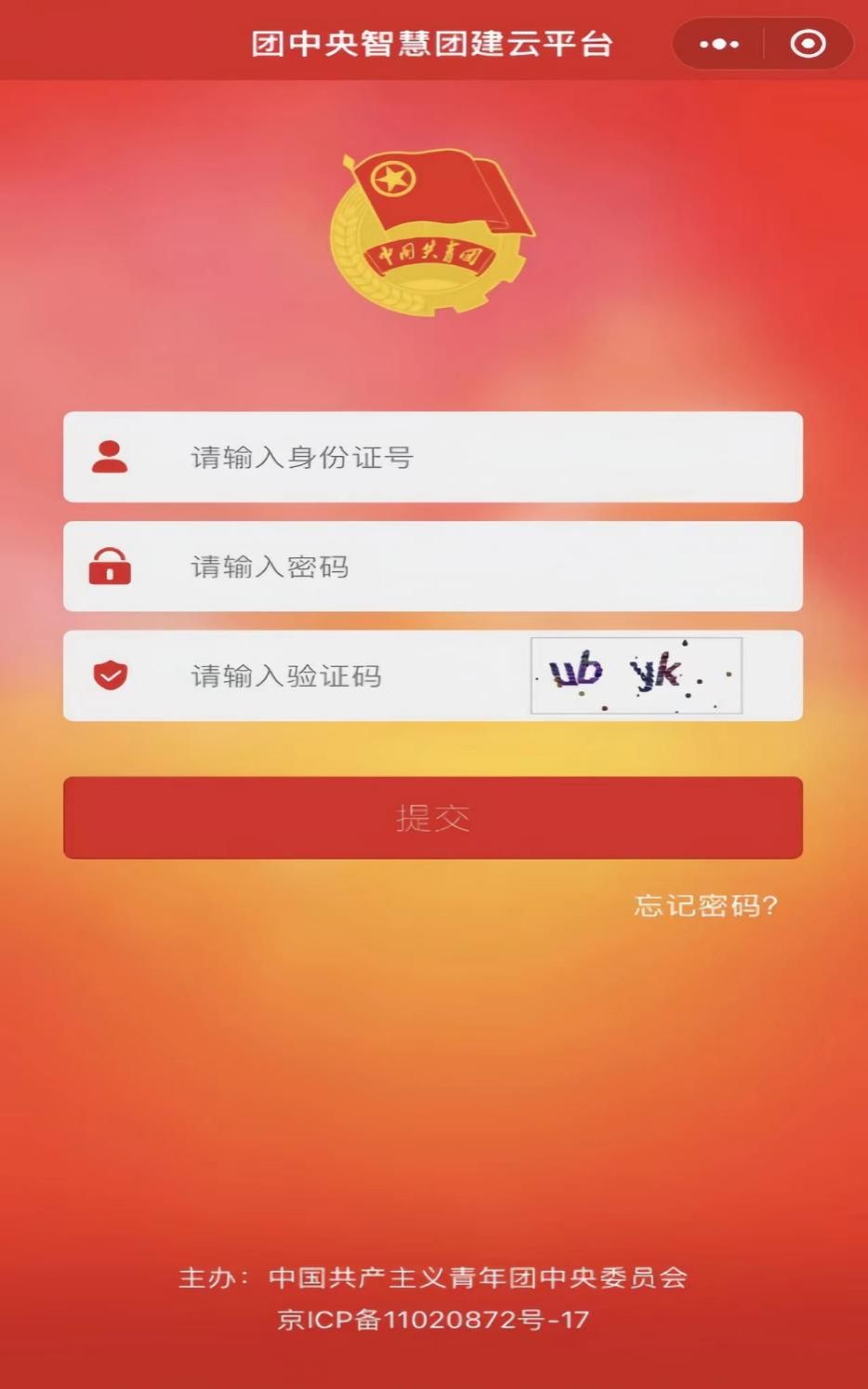 (“智慧团建”云平台登录页面)