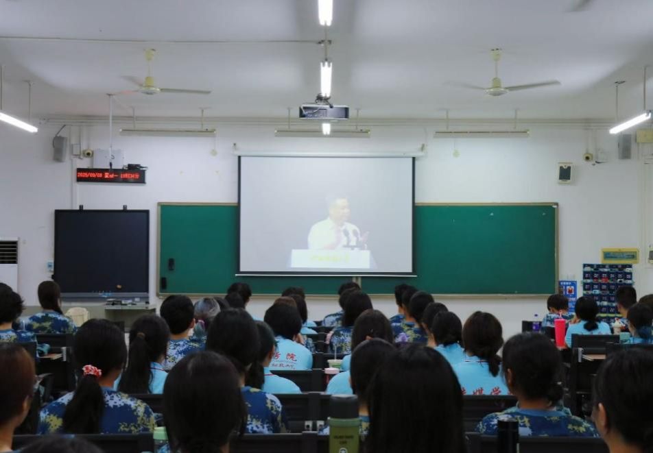 9月8日晚,传媒学院2025级新闻学专业、广播电视编导专业、播音与主持艺术专业新生及2025级新闻与传播专业、戏剧与影视专业研究生新生在明德楼观看学习新生开学第一课。本次课程由学校党委书记唐平秋主讲,主题为“以学习为帆,在青春的征程中引领人生航向”,为新生的入学成长提供指引。