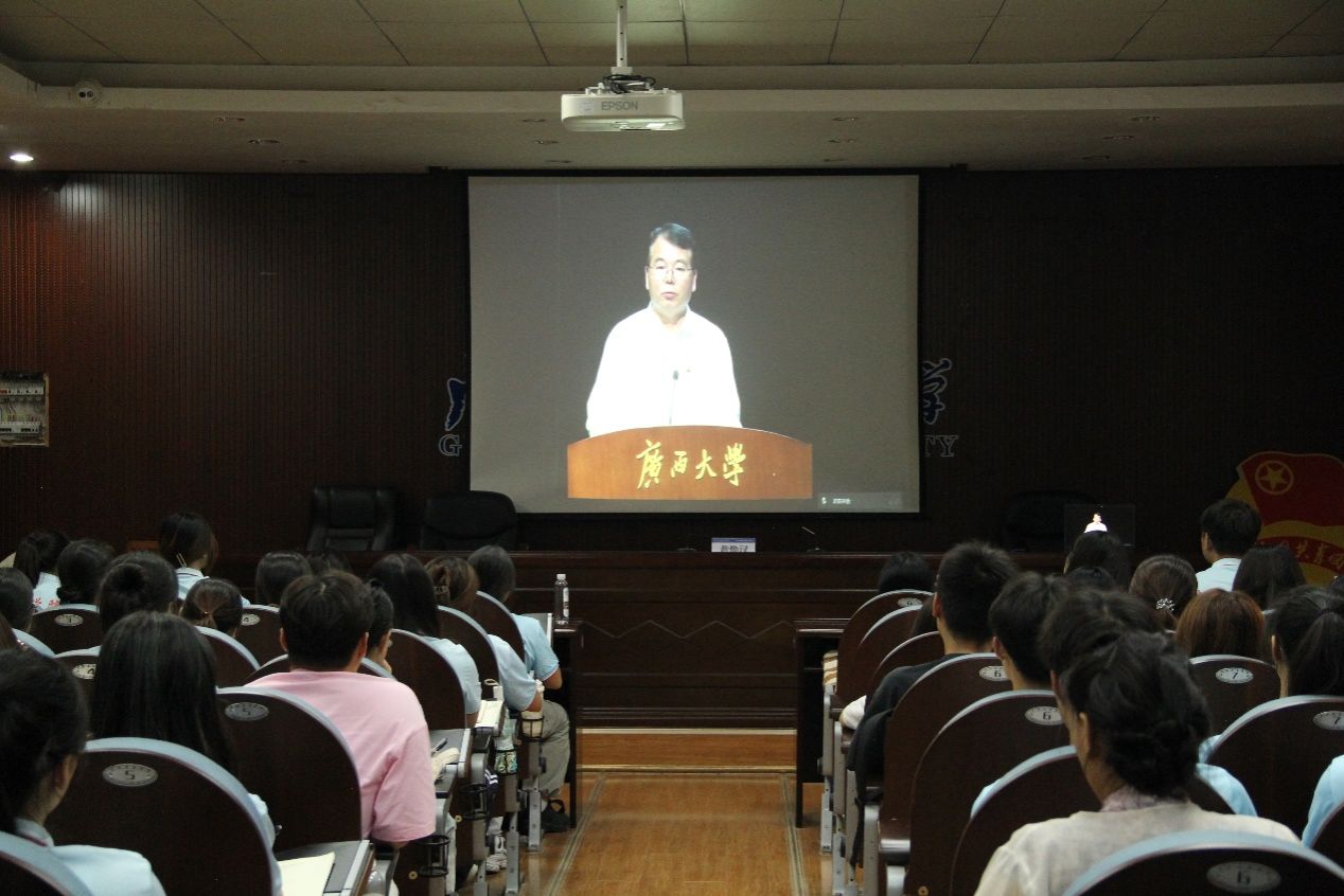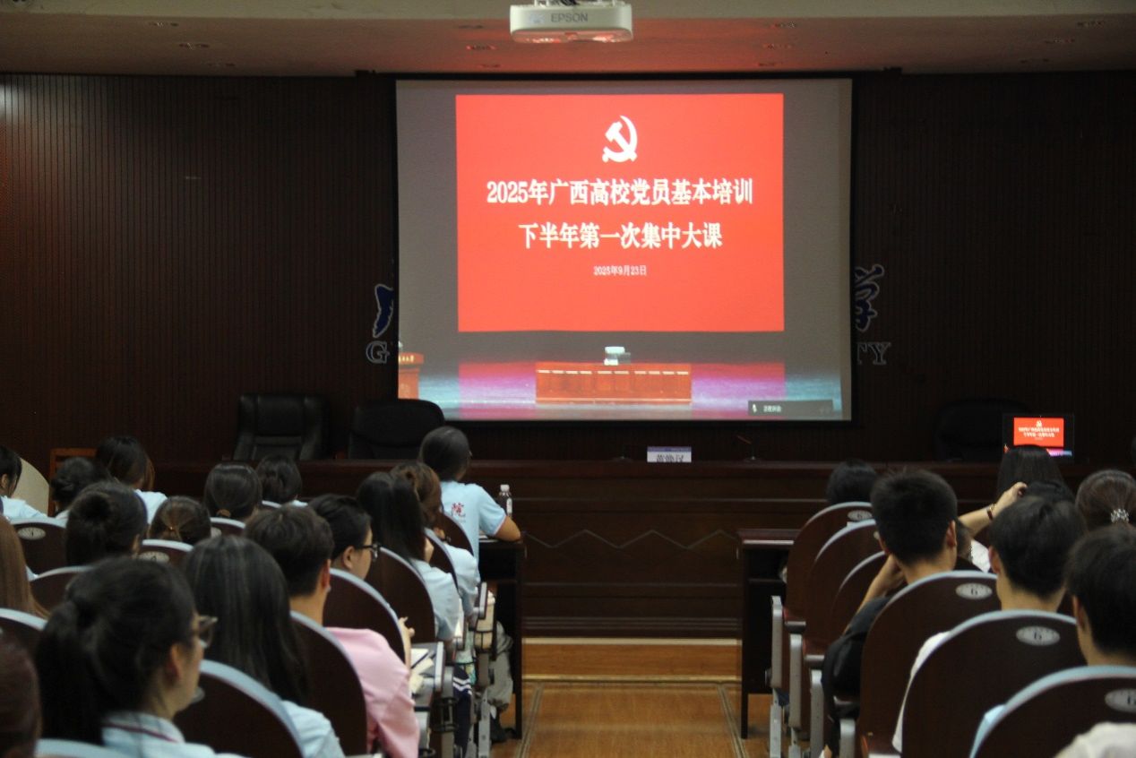 9月23日下午,传媒学院党委在明德楼531报告厅和509会议室开展2025年广西高校党员基本培训下半年第一次集中大课学习活动。学院全体师生党员统一佩戴党员徽章、身着蓝色院服参加学习。