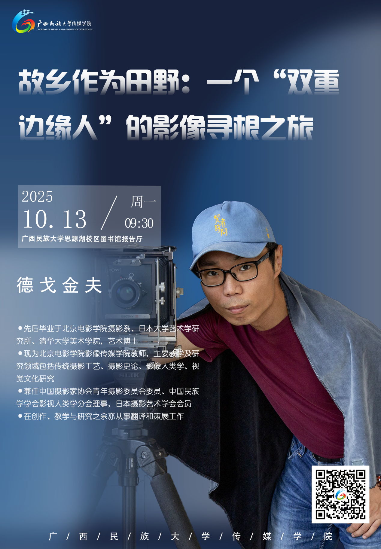 发表时间:2025年10月14日 19:33 作者:讲座预告|德戈金夫:故乡作为田野——一个“双重边缘人”的影像寻根新媒体中心讯:(记者:邓淑琪) 点击:[]