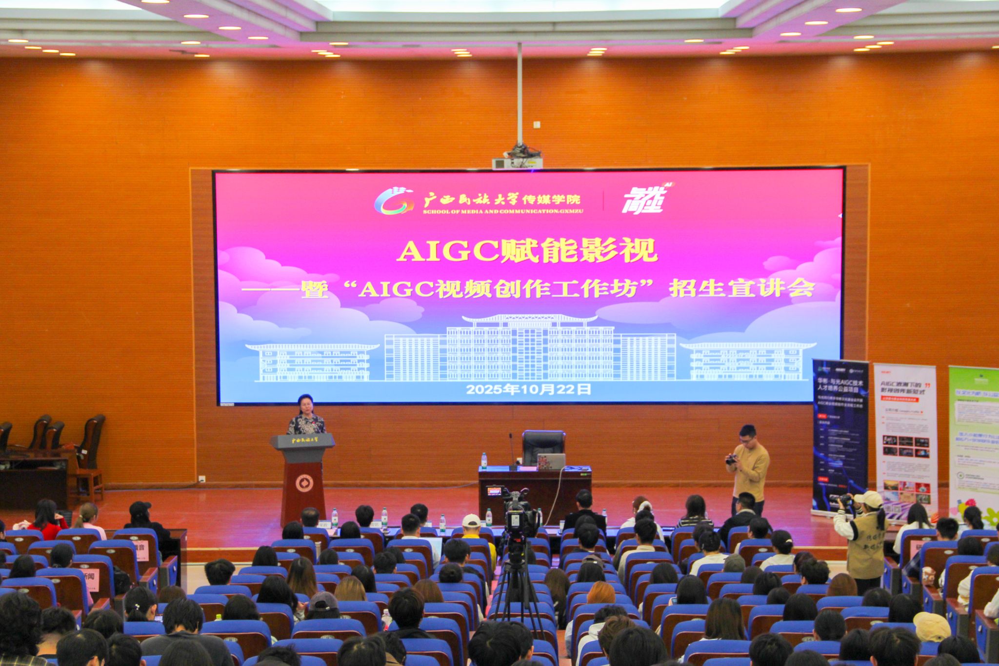 10月22日下午,与光同尘中越(广西)文化科技有限公司副总裁郑浏博、总经理李沐翰、校企事业部总监舒园缘、内训部总监制杨俊铭、教育培训部经理黄冬莹、总经理助理鲁家政到我院开展AIGC赋能影视——暨“AIGC视频创作工作坊”招生宣讲会。讲座由院长杨学明主持,副院长万益杰及学院师生代表参加本次宣讲会。