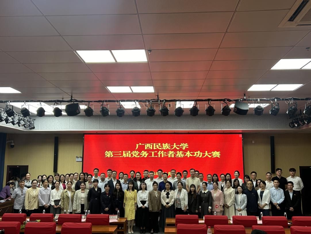为深入学习贯彻《中国共产党普通高等学校基层组织工作条例》,推动落实基层党建“五基三化”巩固年行动,切实提升学校党务工作者履职能力和工作水平,2025年11月7日至8日,广西民族大学第三届党务工作者基本功大赛在相思湖校区顺利举行。我院教工第二党支部书记尹力、学生第二党支部书记徐辉丽参赛。