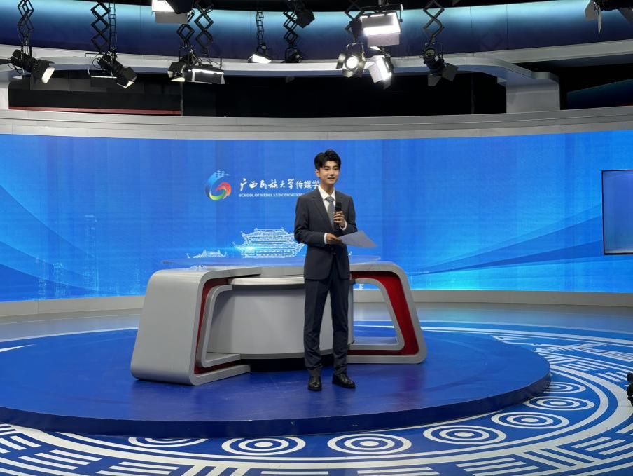 2025年11月11日,春平声音工作室在我院融媒体实训中心成功举行招新面试。本次招新特邀广西广播电视台移动频道总监王小敏、广西卫视资深主播任中坤、广西气象台首席总监张雷等三位业内专家以及我院播音与主持艺术专业教师文嫚、虎亚威担任评委,为同学们提供了专业细致的指导与点评,参与学生普遍表示收获丰富、受益匪浅。
