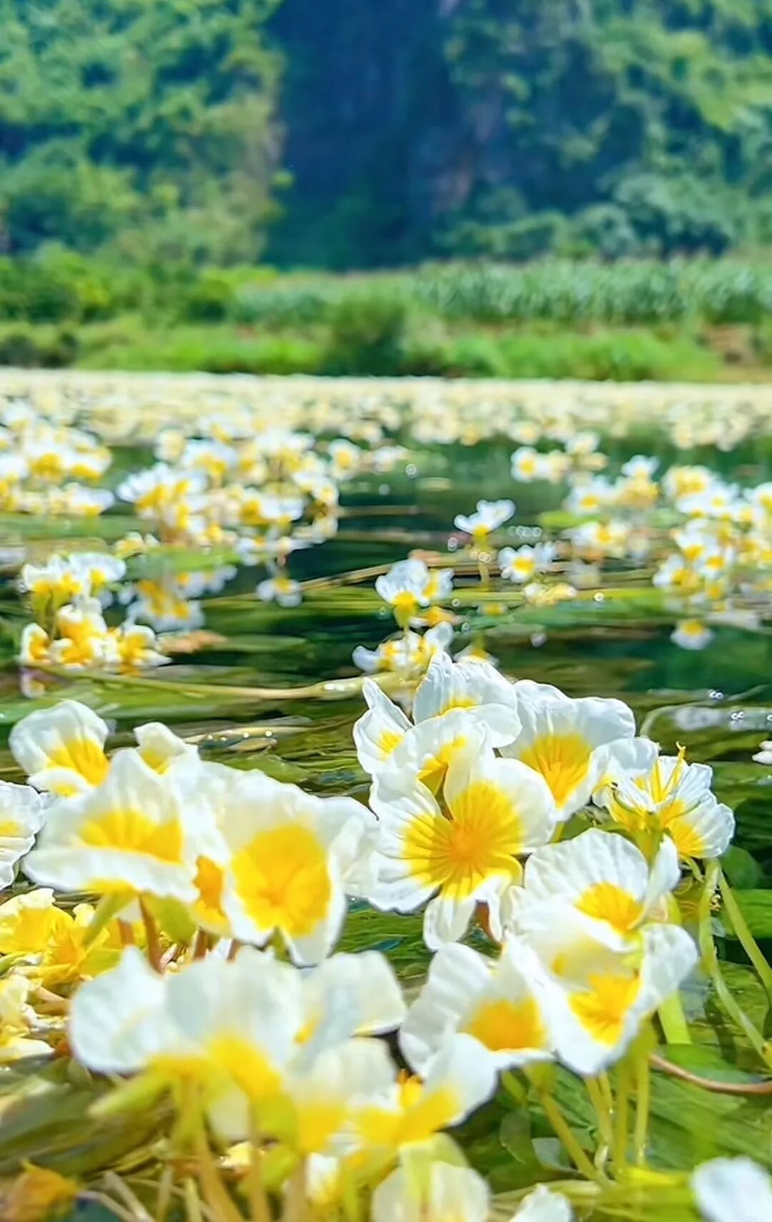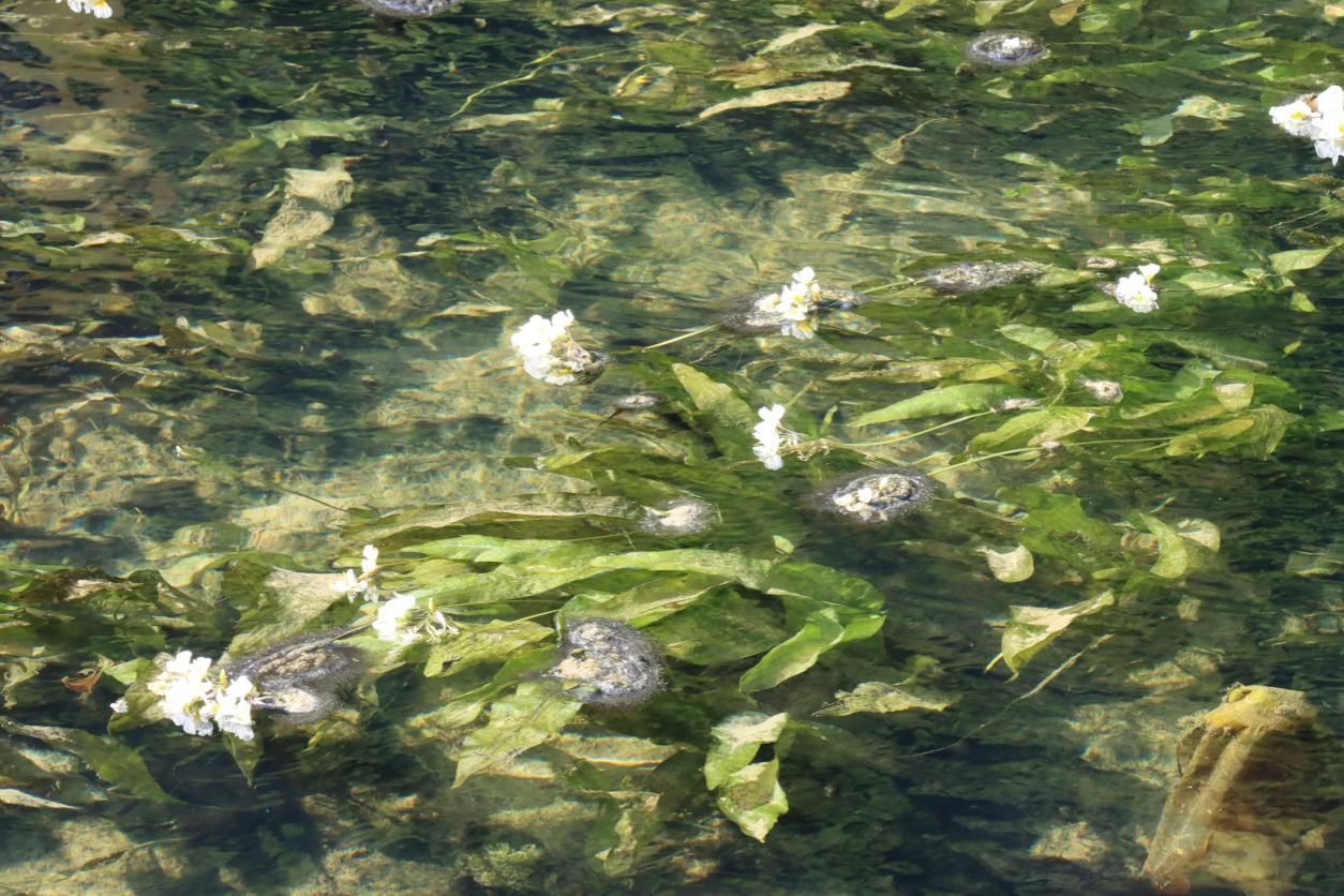 水面漂浮着星星点点的海菜花