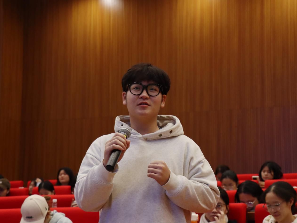 在提问环节,2025级新闻学2班卜业梁就新媒体舆论环境下如何推动舆论风气建设提出疑问。谢春梅从新闻责任、多方视角、政策实施等方面进行专业解答,深入剖析新闻传播中的现实议题,结合案例详细阐释新闻报道需兼顾各方立场、考虑政策制定者与消费者等多方因素。同时她强调,在新媒体时代新闻人要客观看待互联网舆论现象,肩负起引导舆论、营造良好讨论场的责任。