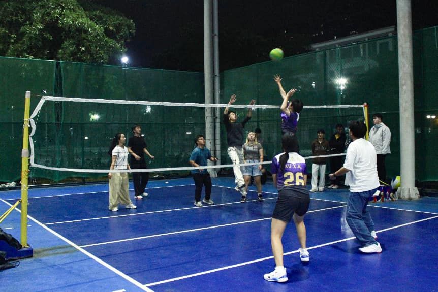 决赛场上,2025级新闻与传播专硕代表队与对手展开了巅峰对决。面对关键比分,队长张子淳带领队伍沉着应对,“慢下来,稳一点”成为团队的制胜心法。主攻手梁圣明在关键时刻的几次果断扣球,有效控制了局面。整个团队将“不抛弃、不放弃”的信念贯穿始终,最终成功登顶。