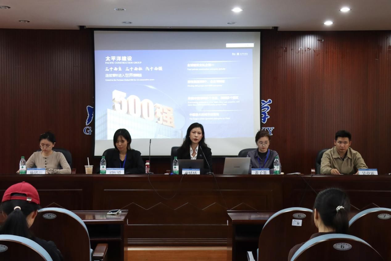 12月23日上午,太平洋建设集团2025年校园宣讲会在我院531报告厅成功举办,集团区域总裁唐恬恬携青年管理团队出席。2022级、2023级部分学生参加。