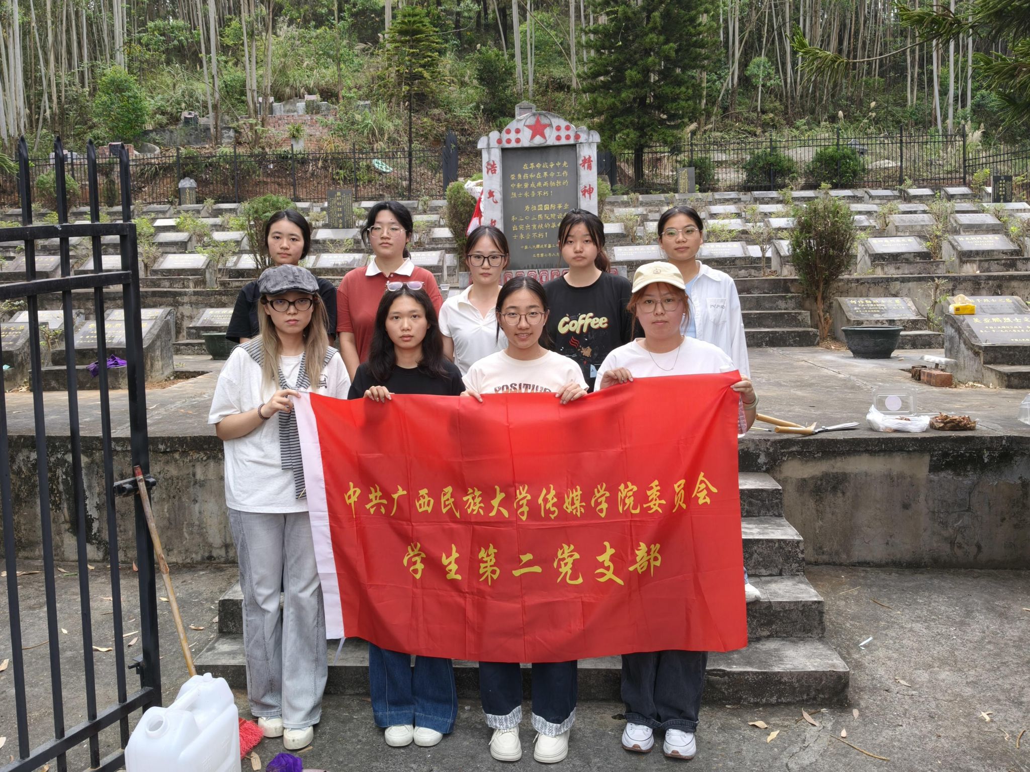 为深入学习贯彻党的二十大精神,大力弘扬雷锋精神和志愿服务精神,传承红色基因、厚植爱国情怀,3月24日下午,传媒学院学生第三党支部书记孟鑫波带领学生第二党支部、学生第三党支部联合西乡塘区退役军人事务局党支部赴中国人民解放军第三0三医院革命公墓开展“弘扬雷锋精神 争做时代先锋”主题党日活动。