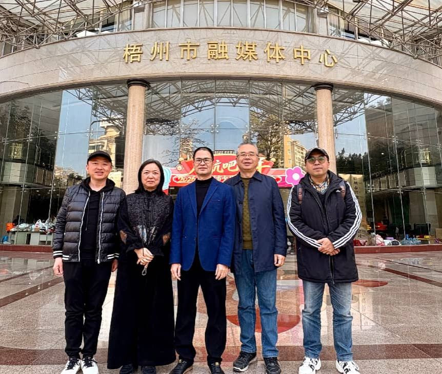 黄春平与梧州融媒体中心相关负责人合影(左三为中心副主任谢永志)