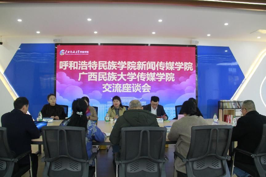 1月24日,呼和浩特民族学院新闻传媒学院党总支书记苏伦高娃、院长额尔敦毕力格一行到我院开展调研交流活动。我院党委书记黄焕汉、院长杨学明,副院长王文娟、万益杰,教师代表参加此次交流活动。