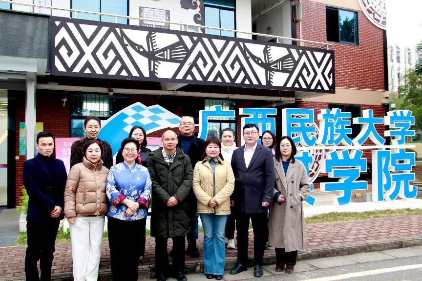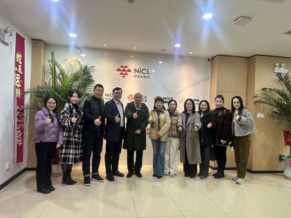 调研组来到广西新影响禾集文化集团有限公司开展访企拓岗活动。该公司执行总裁张飞介绍了公司的发展历程和项目成果,业务涉及实景演出、文创设计、AI技术应用及产教融合等多个领域。三方围绕传媒人才培养、学生实习就业、校企项目合作等内容进行了深入交流。
