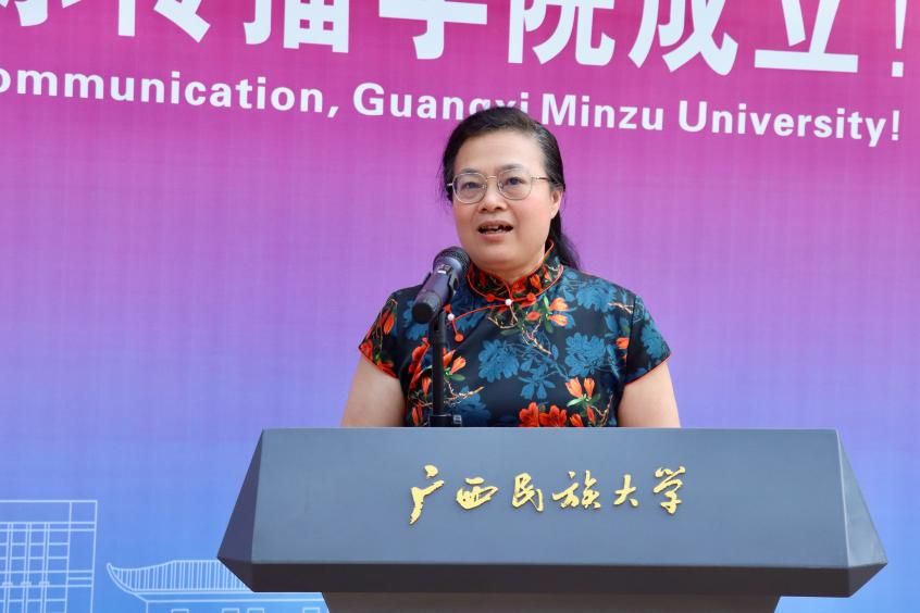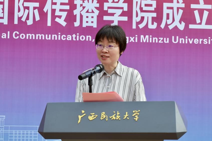 韦仕珍在致辞中表示,成立国际传播学院是学校服务国家国际传播战略、彰显东盟办学特色的重要举措。国际传播学院与传媒学院实行“一套人马、两块牌子”管理,学院将整合学科资源,构建“懂传播、通外语、知区域、善实践”的复合型人才培养体系,打造面向东盟的国际传播人才培养、理论创新与实践合作平台。她希望学院以揭牌为新起点,坚持高质量发展,突出东盟特色,深化产教协同,为讲好中国故事、传播广西好声音、服务中国—东盟命运共同体建设贡献力量。