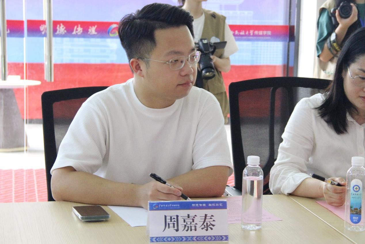 座谈会由我院院长杨学明主持。她介绍道,作为广西首个国际传播学院,学院将构建完整的国际传播人才培养体系,重点强化面向东盟的传播能力建设。